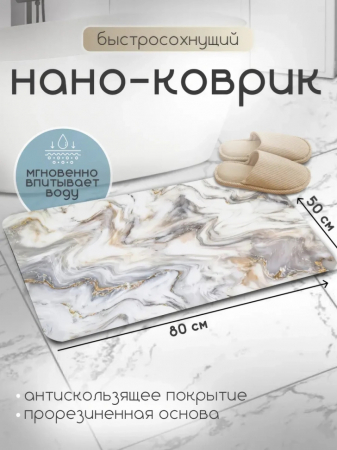 Диатомитовый коврик для ванной быстросохнущий 80x50 защитит ваш пол от воды и грязи и сделает вашу ванную более безопасной и комфортной.