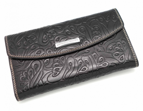 Женский кожаный кошелек от Sergio Valentini. Закрывается на кнопку. Внутри - два отделения и три кармана для купюр, 8 кармашков для пластиковых карт, продольное отделение в клапане. Снаружи, на оборотной стороне - карман без застёжки и отделение для монет на молнии.