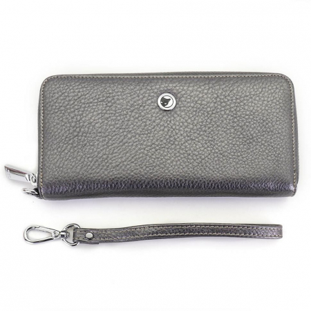 Женский кожаный кошелек на молнии от Sergio Valentini. Закрывается на молнию. Внутри - три отделения и два кармана для купюр, отделение для монет на молнии, 9 кармашков для пластиковых карт. Снаружи, на обратной стороне, карман на молнии. В нижней левой части металлическое полукольцо для крепления кожаного ремешка с карабином.
