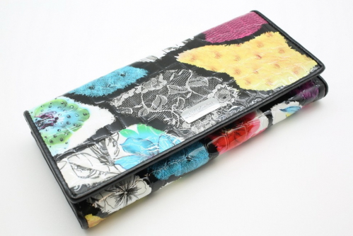 Женский кожаный кошелек от Sergio Valentini. Закрывается на кнопку. Внутри: два отделения и два кармана для купюр, один карман на молнии, 12 кармашков для пластиковых карт, один прозрачный и один продольный карман на клапане. Снаружи, на тыльной стороне: два отделения для монет под рамочным замком и карман на молнии.