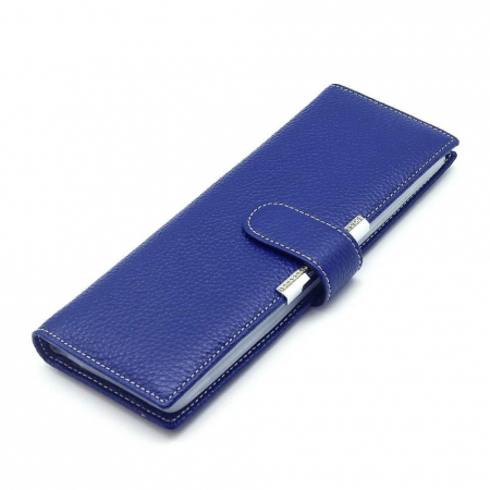 Женская кожаная визитница от Sergio Valentini. Альбом с двадцатью двойными прозрачными файлами для визитных карточек. Закрывается на хлястик с кнопкой. На внутренней стороне левой створки продольный карман, семь кармашков для карточек и прозрачное окошко для фотографии. На правой створке- прозрачный карман.