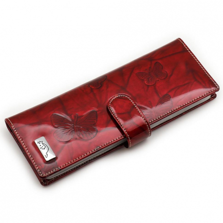 Женская кожаная визитница от Sergio Valentini. Альбом с прозрачными файлами на 40 визитных карточек. Закрывается хлястиком с кнопкой. На внутренней стороне левой створки продольный карман, семь кармашков для карточек и прозрачное окошко для фотографии. На правой створке- прозрачный карман и угловой кармашек.
