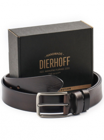 Мужской ремень из натуральной кожи от Dierhoff. Ремень можно легко укоротить. Ширина полотна 3.7 см, длина от 100 до 125 см. с шагом в 5 см. Упакован в фирменную коробку.