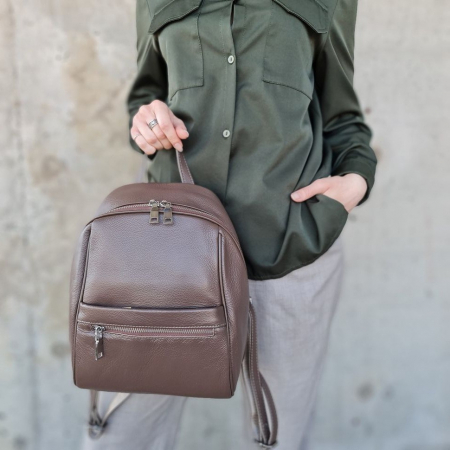Женский рюкзак из натуральной кожи цвета кофе с молоком.
