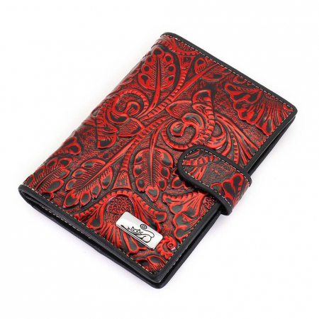 Женская кожаная комбинированная обложка от Sergio Valentini. Закрывается на хлястик с кнопкой. Внутри: отделение для паспорта, отделение с прозрачным вкладышем для автодокументов, на левой створке: три кармашка для пластиковых карт, прозрачный карман для фотографии, на правой створке: пять кармашков для карточек и один боковой карман.