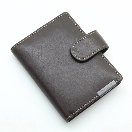 Мужская кожаная визитница от Dierhoff. Закрывается на хлястик с кнопкой. Внутри: удобные прозрачные пластиковые файлы на 28 карточек, текстильная подкладка и прозрачный захват на левой створке, кожаный захват и кармашек на правой створке.