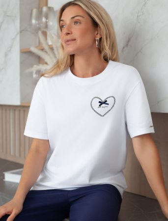Особое внимание привлекает стильный принт в виде сердца с минималистичной надписью, перевод надписи All my love - вся моя любовь. Принт выполненны красками с устойчивым покрытием, который добавляет изделию оригинальности и позволяет выразить индивидуальность.