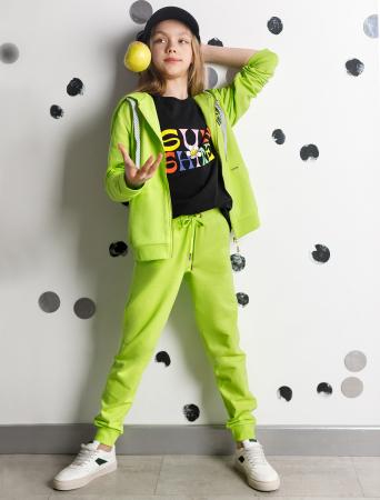 Неоновые джоггеры сшили из мягкого хлопкового трикотажа. Премиальный футер из 100% хлопка позволяет воздуху циркулировать и не раздражает кожу, а свободный крой модели не сковывает движения. За удобную посадку на талии отвечает широкий эластичный пояс с регулируемым шнурком. Модель дополнена высококачественной фурнитурой золотистого цвета. Идеально в костюме с худи F49.405