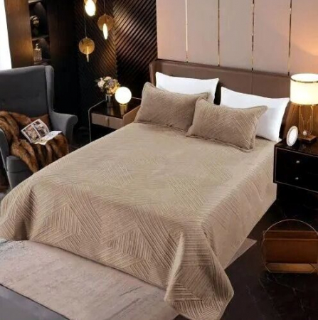 Велюровое стеганое покрывало «Шарм» 220х240 см. – превосходное решение для создания уюта в спальне. Мягкий бархатный велюр на ощупь придаст ощущение роскоши и комфорта. Этот изысканный текстильный аксессуар выполнен из гипоаллергенной ткани, что делает его лучшим выбором для людей с чувствительной кожей или аллергией. Оно изготовлено с использованием высококачественных материалов, что обеспечивает его прочность и долговечность. Способно выдержать множество стирок без потери своих качеств и внешнего вида, будь то вручную или в стиральной машине. Это дает возможность вам наслаждаться красивым пледом на протяжении долгого времени. Одним из главных преимуществ этой коллекции является простота в уходе. Изделие не садится и быстро сохнет, что значительно облегчает его поддержание в чистоте и порядке. Покрывала отлично вписываются в любой интерьер детской или взрослой спальни и станут украшением для вашей квартиры или дачи!