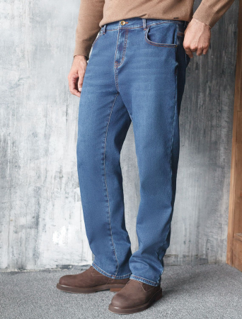 Теплые джинсы синего цвета прямого кроя созданы для мужчин, ценящих комфорт и стиль даже в холодную осень или зиму. Повседневные джинсы выполнены из эластичного денима, легко тянутся и не сковывают движений, обеспечивая правильный баланс между свободой и удобной посадкой Regular Fit. Внутри мягкий флис дарит приятные ощущения, надежно согревают в холодную погоду и делают каждую прогулку максимально комфортной. Свободный классический крой подходит на разныетипы фигур, в том числе и большие размеры. Правильная посадка гарантирует удобство и комфортные ощущения при носке. Джинсы дополнены пятью карманами и брендированным патчем на поясе. Контрастная прострочка и легкая декоративная стирка гармонично сочетаются с классическим цветом джинс, добавляя стильный акцент в образ. Джинсы удобные на все случаи жизни: они сохраняют форму, не деформируются при носке и обеспечивают оптимальную теплоизоляцию. Утепленный материал создает дополнительный уровень защиты от холода, что делает изделие надежным выбором на зиму и осень. Комфортные брюки отлично сочетаются с разными образами благодаря универсальному дизайну. Они подходят тем, кто ценит практичность и стиль без компромиссов по качеству.