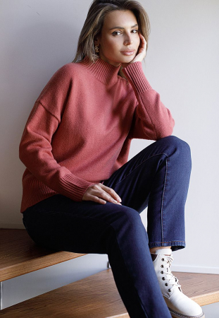 Свитер темно-кораллового цвета с высоким воротом связан из высококачественной пряжи с кашемиром — идеальное сочетание мягкости и практичности. Пряжа с кашемиром придаёт ему бархатистую нежность и тонкую структуру, каждое прикосновение с которой, напоминает о тепле и уюте в прохладные дни. Благодаря нежной текстуре материала этот вариант отлично подходит даже для чувствительной кожи, не вызывая раздражения и дискомфорта в течение дня. Спущенная иния плеча придает свитеру расслабленный вид, подчеркивая актуальный стильный образ обладательницы. Универсальный крой и длина подходит для разных типов фигуры, в том числе и на большие размеры, свободный фасон не стесняет движений, а оверсайз силуэт актуален в этом сезоне и выглядит современно. Длинный рукав с широкими манжетами защищает от холода, делая этот вариант особенно практичным в осенне-зимний период. Такой теплый свитер станет надежным спутником в межсезонье и зимние дни, сочетая практичность, комфорт и стиль. Сочетается в костюме с брюками D38.013, D38.012 и юбкой D36.016