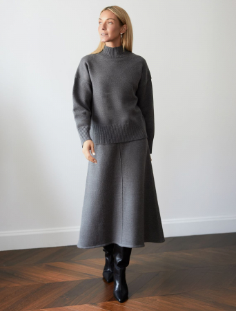 Юбка А-силуэта выполнена из мягкой пряжи с кашемиром. Вязаный кант вертикально проходящий по всему изделию, визуально стройнит и вытягивает силуэт. Мягкая пряжа очень приятная к телу, поддержит комфорт на протяжении всего дня, при этом не перегревая. Сочетается в костюме с D31.141, D31.147, D31.148, D31.149, D34.202, D34.203, D34.205, D34.206, D37.017, D37.018, D39.358, D39.359, D39.360