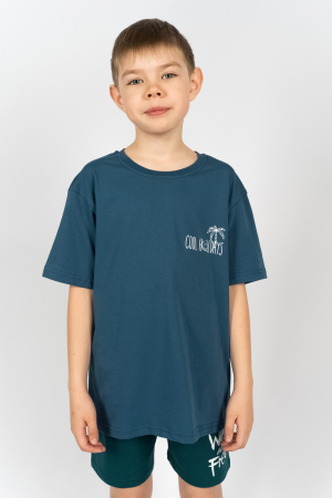 Лаконичная базовая футболка для мальчика изготовлена из 100% хлопка. Небольшой, но очень выразительный принт навевает мысли о пляжах и море, отдыхе и лете. Футболку можно носить в повседневных, спортивных и домашних образах. Благодаря материалу и крою в ней будет удобно на протяжении всего дня. Горловина круглая обработана воротником из рибаны. Горловина спинки внутри обработана настрочной планкой из кулирки. Низ изделия и рукавов обработан швом в подгибку. На полочке принт шелкография.