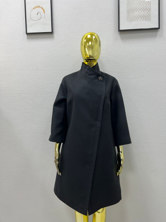 Изделие с большой линией заноса. Застёгивается на три пришивные кнопки.