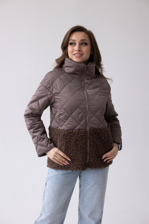 Короткая комбинированная куртка из плащевой стеганой ткани и искусственного меха