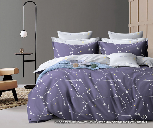 Особенностью дизайна является уникальный принт в виде созвездий, который создает атмосферу спокойствия и загадочности. Пододеяльник сшит из основной ткани и ткани-компаньона, а наволочки и простыня выполнены с акцентом на стиль и гармонию.