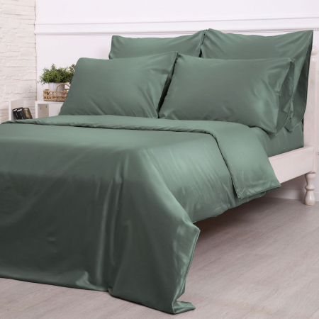 Комплект постельного белья Дымчатый изумруд Турецкий сатин (арт. 0557752510-Семейный)
