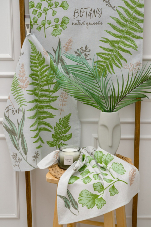 Набор полотенец Ботаника - уникальное предложение для тех, кто ценит качество и комфорт в своем доме. Эти чудесные полотенца изготовлены из высококачественной рогожки, сделанной из 100% хлопка. Вся коллекция включает в себя полотенца с разнообразными лиственными принтами. Материал рогожка, из которой изготовлены кухонные полотенца с петелькой, удивительно мягкий и приятный на ощупь, благодаря чему использование этих полотенец приносит только наслаждение. Кроме того, рогожка является экологически чистым и гипоаллергенным материалом, что делает этот набор полотенец идеальным выбором для людей с чувствительной кожей.