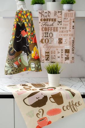 Набор кухонных полотенец Время чаепития, может служить отличным подарком на любой весенний праздник. Милый кофейный принт с котом и сердечками никого не оставит равнодушным. Полотенца отлично впитывают влагу и очень износостойкие, что делает их незаменимыми в быту. Для удобства использования к каждому полотенцу пришита петелька.