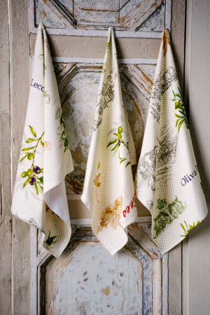 Набор из трех полотенец Олива произведен из высококачественной рогожки. Светлый и практичный дизайн украсит вашу кухню. Для удобства использования к каждому полотенцу пришита петелька.