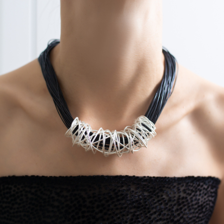 Ювелирный сплав, родиевое матовое покрытие, натуральная кожа.