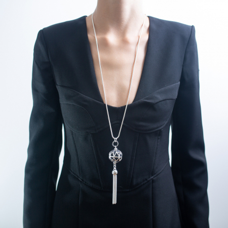 Ювелирный сплав, родиевое покрытие, натуральная кожа.