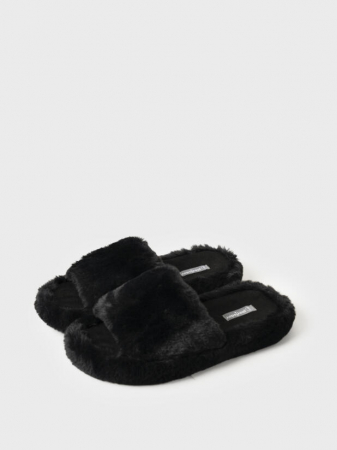 + минималистичные чёрные тапочки из искусственного меха «под норку» — идеально впишутся в любой домашний образ