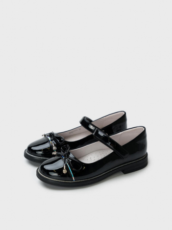 Модные чёрные лаковые туфли с бантом в школу для девочки от PlayToday — универсальный выбор для тех, кто ценит удобство, красоту и уверенность в каждом шаге.