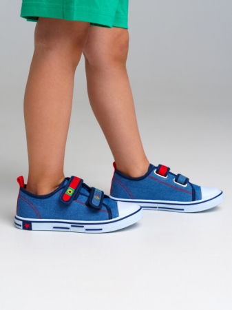 Кеды из текстиля. Текстильная хлопковая подкладка обладает высокой гигроскопичностью. Съемная стелька выполнена из натуральной кожи, имеет анатомический элемент для поддержки свода стопы. Две липучки создают удобство при обувании. Подошва из ПВХ легкая и гибкая, устойчива к истиранию.