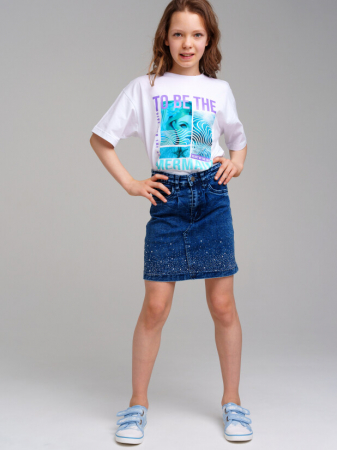 Юбка джинсовая для девочки Застежка на пуговицу, пояс с внутренней утяжкой.