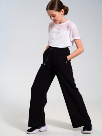 Школьные черные текстильные брюки non-iron свободного силуэта для девочки подростка от PlayToday — идеальный выбор для тех, кто ценит стиль, удобство и простоту в уходе. Эта модель легко впишется в любой школьный гардероб и подойдёт как для уроков, так и для школьных мероприятий.