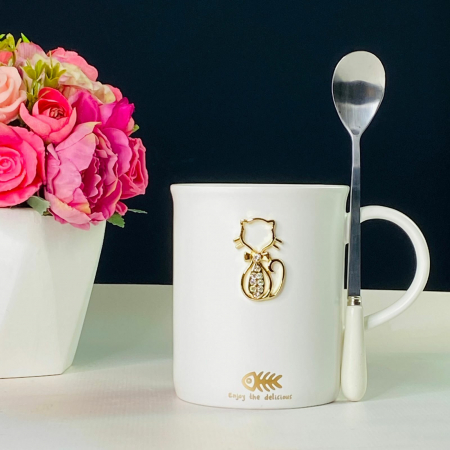 106-302 Кружка 350мл с ложкой в под.уп.(х60)Фарфор (арт. 106-302)