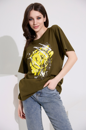 Футболка в стиле оверсайз. Прямая, свободная, удлиненная, с округлой горловиной. Рукав короткий. Горловина обработана обтачкой из основного полотна.