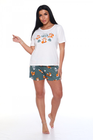 Пижама из кулирки - футболка и шорты. Футболка украшена печатью. Шорты без карманов.