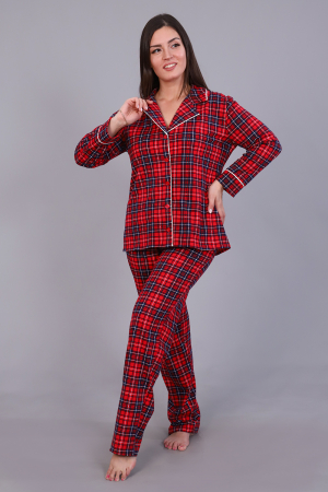 Пижама свободного кроя с лацканами и воротником, отделанными кантом. Брюки прямого кроя. Модная, современная вещь в гардеробе каждой девушки.