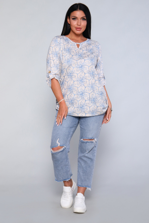 Женская блуза - туника с рукавом 3/4 с фигурным вырезом с окантовкой из основной ткани. Длина рукава регулируется патой на пуговице. Такая же регулировка находится по бокам изделия. Можно носить как с опущенной патой, так и собранной на декоративную пуговицу. Низ изделия закруглен, перед немного укорочен. Блузка отлично подойдет как для уличного, так и домашнего ношения. Прекрасно сочетается с джинсами на прогулку, с юбками - миди в офис, с домашними брюками для дома и дачи. Большой ассортимент приятных расцветок на любой вкус. Туника прекрасно смотрится на беременных, так как выполнена в свободном стиле. Отличный подарок любимым женщинам!