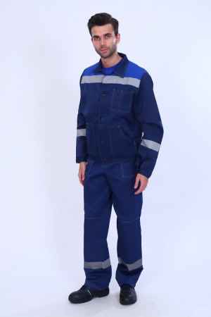 Защитный костюм для профессионалов - это легкая и удобная рабочая спецодежда для мужчин. Специальная одежда обеспечит комфорт и безопасность в работе в соответствии с ГОСТ. Новинка в категории мужская одежда - выполнена из плотного материала, который не сковывает движения. Он создает водонепроницаемый эффект, в том числе отталкивает грязь . Спецовка не вытягивается, то есть держит форму. Костюм с брюками прост в уходе, а именно стойко переживает частые стирки. При носке спецодежда не мнется, ведь ее удобно хранить и носить с собой. В составе есть хлопок. Куртка укороченная, с притачным поясом. Центральная бортовая застежка на петли и пуговицы. Воротник отложной. Один нагрудный накладной карман с отделением для ручки. Два нижних накладных кармана с наклонным входом. Рукава с манжетами, застегивающимися на пуговицу, с налокотниками. Притачной пояс с участками эластичной тесьмы по бокам. По шву притачивания кокетки и по рукавам СОП 50 мм. Брюки с притачным поясом, с застежкой гульфика на тесьму молния и одну пуговицу на поясе, пять шлевок. Два накладных кармана с наклонным входом. Наколенники, по низу брюк СОП 50 мм.