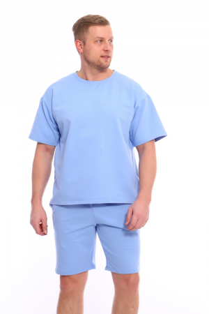 Комплект состоит из футболки оверсайз и шорт. Футболка свободного кроя, с коротким рукавом, круглым вырезом горловины. Шорты прямого кроя с карманами, на поясе шнур для регулировки .