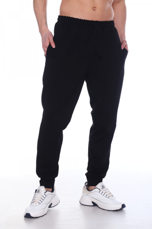 Брюки выполнены из высококачественного футера с лайкрой. Брюки на удобной резинке и регулируются шнурком. Низ брюк на манжетах.