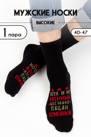Оригинальные мужские носки с надписью Хотя и не военный, все равно пацан отменный в верхней части стопы. В комплекте 1 пара.