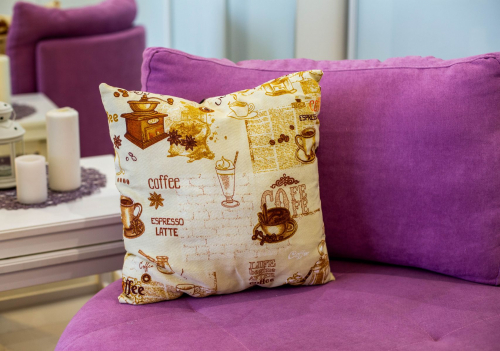 Декоративная подушка с кофейным рисунком отлично подойдует в ваш интерьер. Она прекрасно будет смотреться в гостиной, детской комнате или спальне.