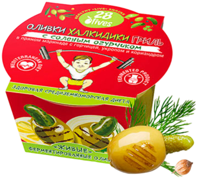Оливки Халкидики ГРИЛЬ с соленым огурчиком в пряном маринаде с горчицей, укропом и кориандром