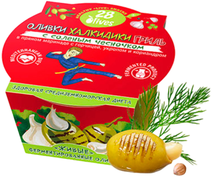 Оливки Халкидики ГРИЛЬ с соленым чесночком в пряном маринаде с горчицей, укропом и кориандром