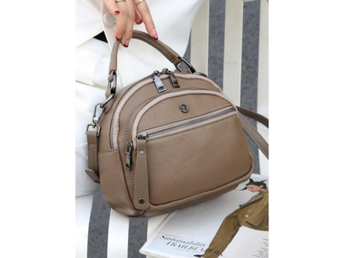 Короткая ручка и два ремня, текстильный ремень и кожаный с возможностью регулировки. Одно основное отделения на молнии. Внутри: два кармана один из которых на молнии. Снаружи: спереди накладной вместительный отдел на молнии, дополнительный карман для акссесуаров на молнии. Сзади: карман для мелочей на молнии.