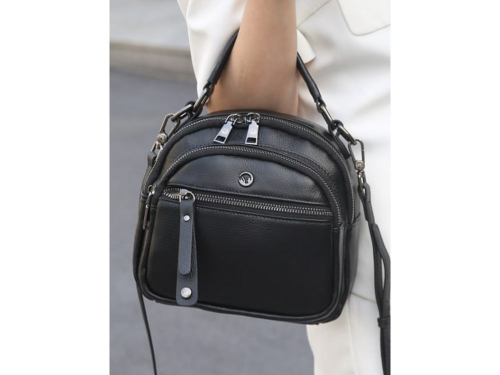 Короткая ручка и два ремня, текстильный ремень и кожаный с возможностью регулировки. Одно основное отделения на молнии. Внутри: два кармана один из которых на молнии. Снаружи: спереди накладной вместительный отдел на молнии, дополнительный карман для акссесуаров на молнии. Сзади: карман для мелочей на молнии.