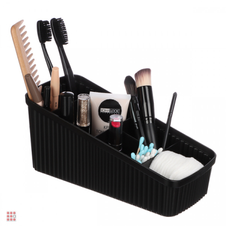 Органайзер универсальный VELVET 240х117х106 мм, черный гранит с шестью секциями – это компактное и вместительное приспособление для хранения аксессуаров, косметики, декоративных и уходовых средств, а также средств гигиены. Пластиковый органайзер можно расположить в ванной комнате, а также в спальне на косметическом столике или в шкафу. Поможет организовать порядок и иметь необходимые мелочи в быстром доступе. Черный цвет впишется в любой интерьерный стиль.