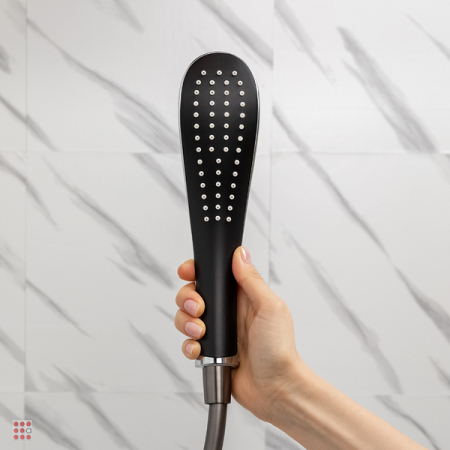 Лейка для душа, 1 режим, 63х250 мм, черный/хром