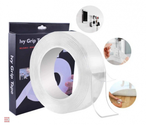 Многоразовая клейкая лента / двусторонний скотч / Нано скотч / Крепежная лента Ivy Grip Tape / 3 метра