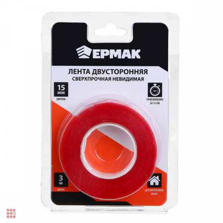 Сверхпрочная двусторонняя клейкая лента ЕРМАК эффективно фиксирует элементы к различным поверхностям, в том числе стеклянным. Лента отлично подходит для крепления молдингов, дефлекторов, разных элементов к лобовому стеклу автомобиля, фиксации градусников и информационных панелей на окнах и дверях, фиксация зеркал и аксессуаров в ванных комнатах или саунах.