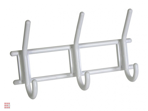 Вешалка 3-х крючковая снежно-белого цвета выполнена из прочного ABS пластика. Крючок-вешалка крепится на стену и используется для хранения легких вещей: ветровок, курток, шляп, сумок и т.п.